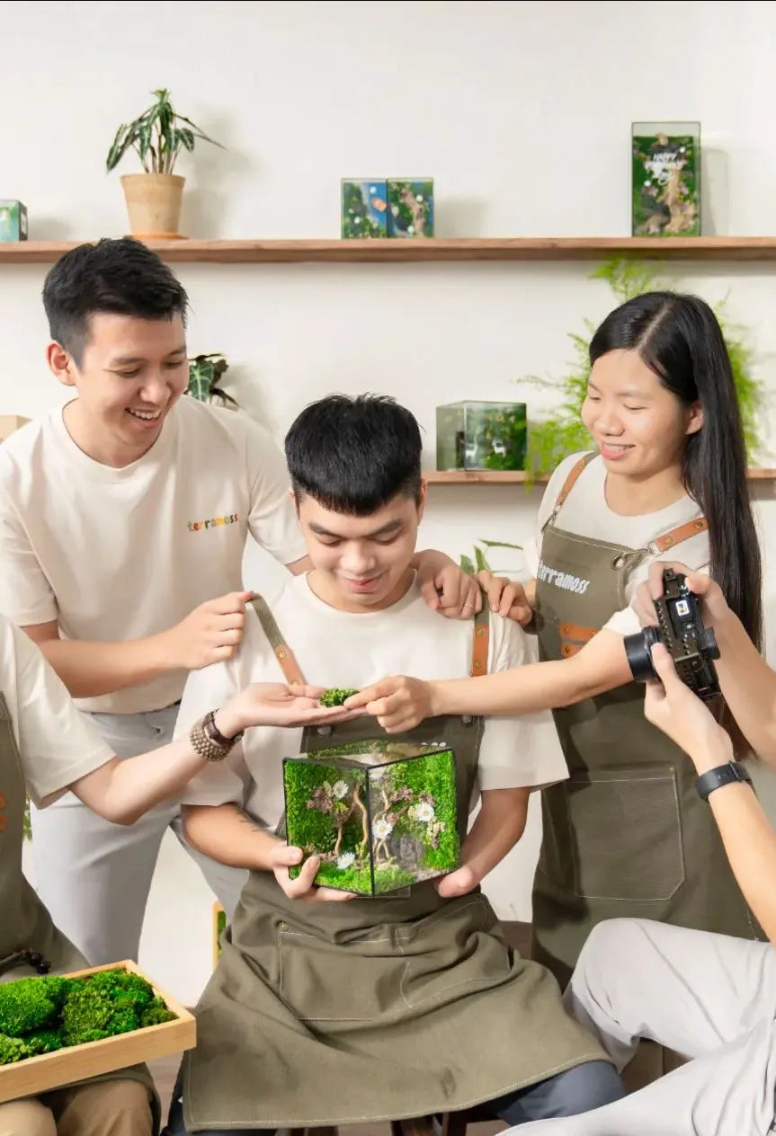 TerraMoss began from a simple yet profound passion: to create small, heartfelt gifts for our loved ones in Vietnam. These little gifts not only bring joy but also serve as a way to connect people with nature, with the simple yet meaningful values it offers. However, TerraMoss was not born solely to bring the unique beauty of nature closer to you and your loved ones. We carry with us a higher mission: to bring smiles, hope, and opportunities to those who are vulnerable or disabled, helping them find renewed faith and live more fulfilling lives. We believe that through these creations, we do not only bring natural beauty but also spread love and positive energy, connecting people across the world and building a community where respect, love, and hope are always present.